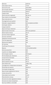 - Velocidade máxima de 7 km/h e autonomia máxima de 26 km.