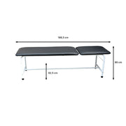 Mesa de exame, que permite o correto posicionamento do paciente, de forma confortável.