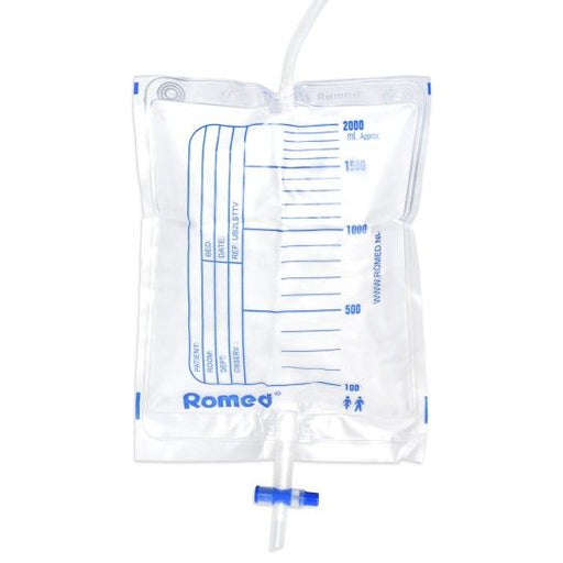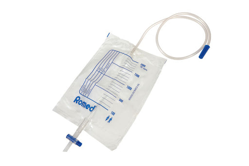 Ortopedia AlmeidasSacos de urina Romed, 2 litros, com válvula de retenção e válvula T, tubo de 90 cm e estéreis. Embalagem de 10 unidades. Referência: UB2LSTTV