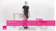 - Graças ao design de três partes e ao fecho de velcro, medi PTS® pode ser facilmente ajustado à circunferência da perna do utilizador. Isso é particularmente importante após o trauma ou na fase inicial após cirurgias, quando o joelho geralmente está inchado.