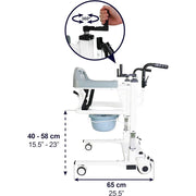 Cadeira regulável em altura, por sistema hidráulico, para se adaptar às necessidades de cada utilizador. NÃO ADEQUADO AO BANHO.