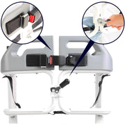 2. Quando a altura estiver ajustada, ajude o utilizador a mover para cima de cada um dos lados da cadeira e feche a mesma, aravés do fecho locaizado na traseira da cadeira.