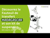 A partir da posição sentada, basta deslizar o assento flexível sob as nádegas do paciente e prender as 4 fivelas laterais. Depois de posicionar o encosto de segurança, basta elevá-lo eletricamente.