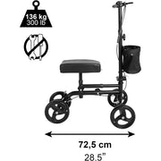 REGULABLE EN ALTURA: el andador es regulable en altura (85,5 – 106 cm), así como el soporte acolchado para las rodillas (43 – 53 cm), lo que permite adaptarse a las necesidades del usuario. Además, es fácil de transportar y almacenar gracias a su sistema de plegado.