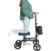 FUNCIONAL: Este andador de rodilla es una alternativa eficaz a las muletas y muletas y permite al usuario moverse de forma independiente y cómoda gracias al manillar con frenos y a las cuatro ruedas que permiten su uso tanto en interiores como en exteriores. También dispone de una cesta para guardar los objetos del usuario.
