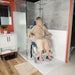 Permite a los usuarios sentarse cómodamente en una posición relajada mientras se bañan. El mecanismo de inclinación segura se acciona desde la parte trasera de la silla. El movimiento está soportado por 2 actuadores laterales 100% de acero inoxidable, garantizando una excelente estabilidad en condiciones de humedad.